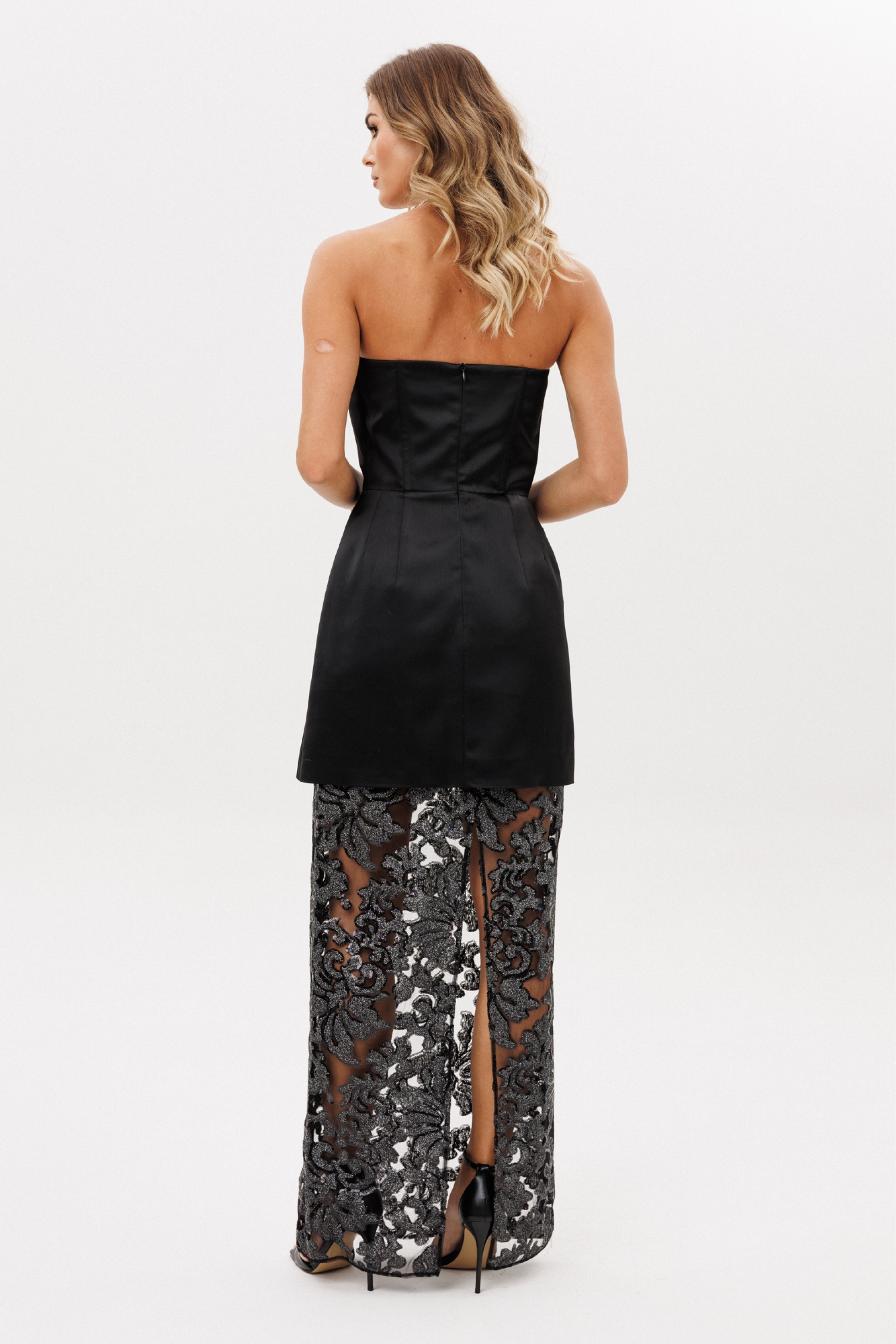 Платье выполнено из плотного атласа. Платье приталенного силуэта, отрезное по линии талии, длиной выше линии колена. Лиф выполнен в виде корсета, в рельефы вставлен регилин. Застежка на потайную молнию сзади в среднем шве спинки и юбки. Юбка прямого силуэта. Платье на притачной по низу подкладке. Нижняя юбка в комплект НЕ ВХОДИТ и продается отдельно м.3004.